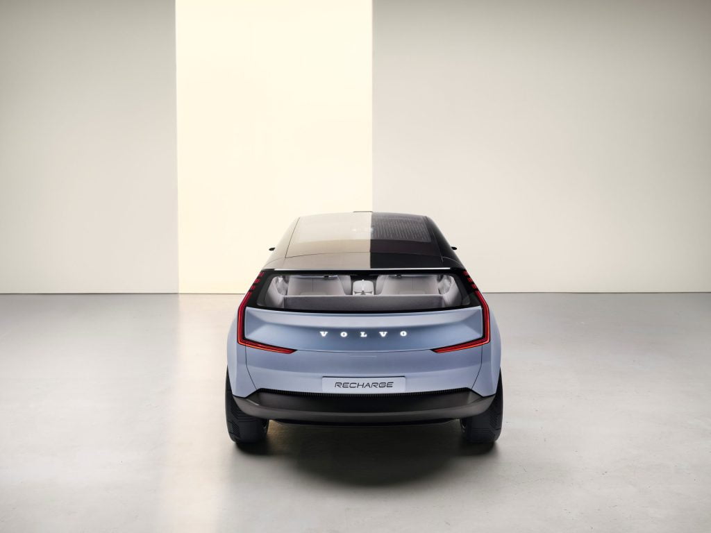 Kiedy wkraczamy w erę samochodu elektrycznego, kluczową kwestią będzie to, jak daleko można przejechać na pełnym naładowaniu – powiedział Owen Ready, szef działu strategicznego i projektowania marki w Volvo Cars. Najprościej jest zastosować większe akumulatory, ale to nie to samo, co zwykłe dodanie większego zbiornika paliwa w dzisiejszych czasach. Akumulatory zwiększają wagę i zwiększają ślad węglowy. Zamiast tego musimy zwiększyć ich wydajność, aby zwiększyć zasięg. W Concept Recharge staraliśmy się osiągnąć równowagę pomiędzy dużym zasięgiem i wydajnością energetyczną, a zachowaniem takiej samej przestrzeni, wygody i wrażeń z jazdy, jak we współczesnych SUV-ach.