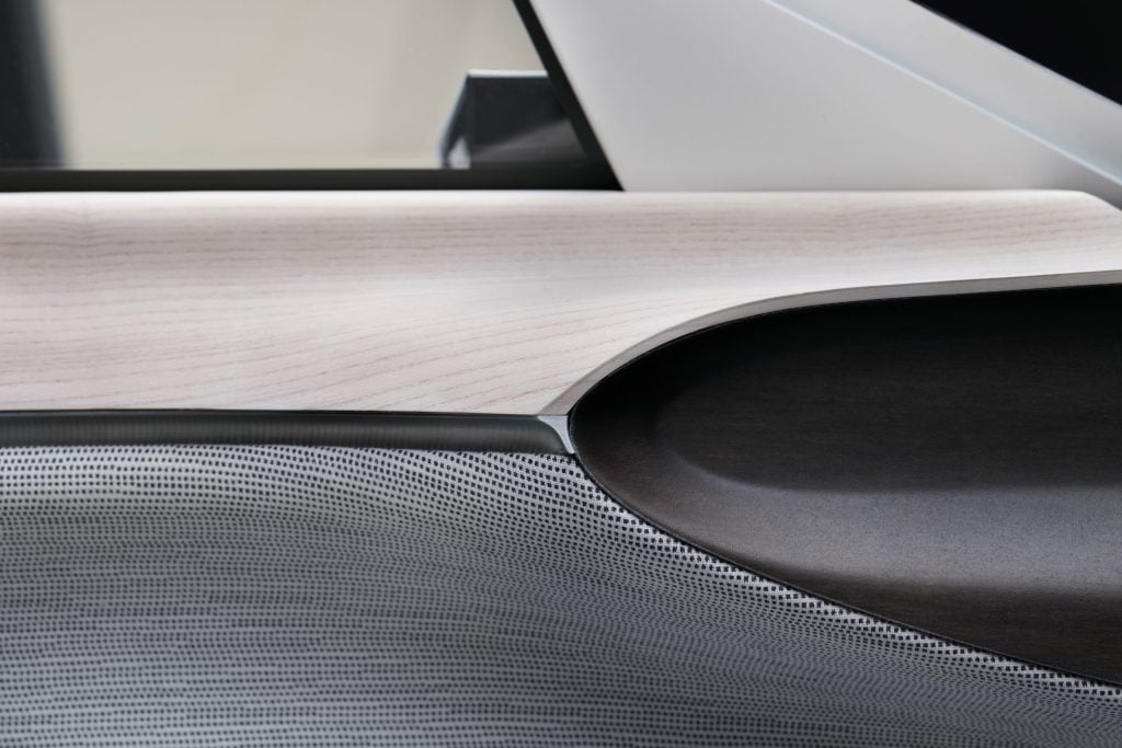 Z ekologicznej, szwedzkiej wełny stworzono naturalną, oddychającą tkaninę bez sztucznych dodatków. Ten ciepły i miękki materiał został wykorzystany w oparciu fotela oraz w górnej części deski rozdzielczej. Wełniany dywan pokrywa też dolne części drzwi i podłogę.