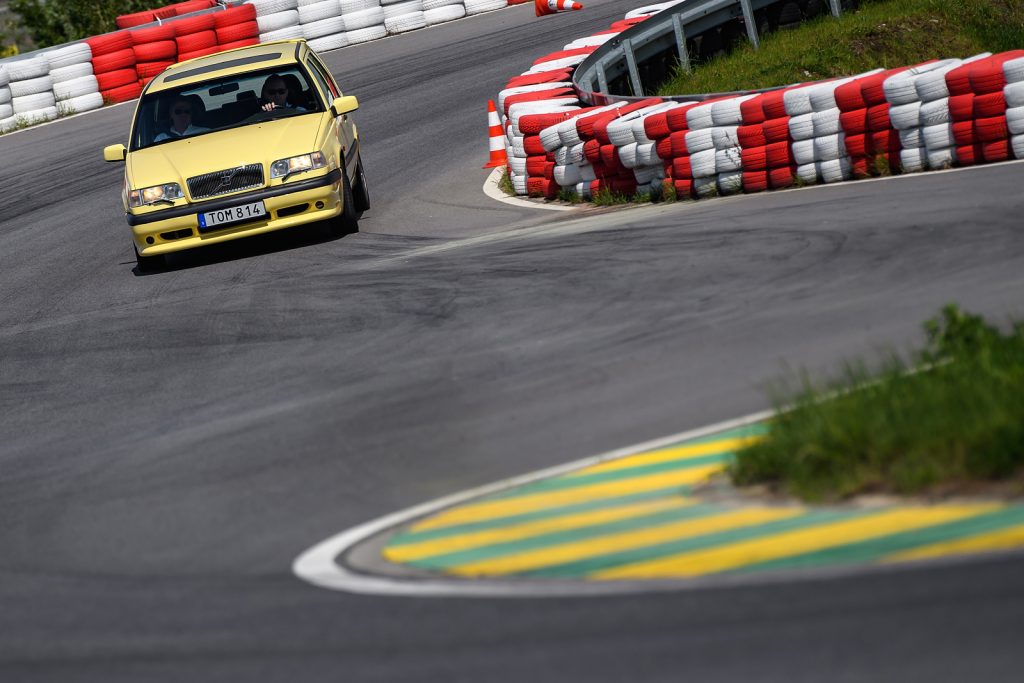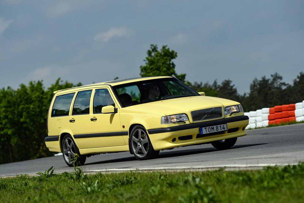 - Volvo 850 R, 2.3 , 1995 rok – przebieg około 85 000 km. Ten samochód trafił do Europy z rynku amerykańskiego. Wyposażono go w automatyczną skrzynię biegów, dość powolną, ale moc silnika i tak potrafi pokonać jej leniwy charakter. Testowany model ma silnik o mocy 225 KM, przy czym są to konie mechaniczne osadzone na dość tłustych nóżkach. Lakier Banana Yellow należy do najbardziej poszukiwanych przez fanów Volvo. W zestawieniu z szarą felgą 17-tką stanowi typowy zestaw rodem z plakatów lat 90-tych. Na torze silnik mruczał leniwie, ale w każdej sytuacji ochoczo napędzał pojazd bez zbędnej zwłoki. Model 850 był pierwszym dużym kombi Volvo z napędem na przód. 850-tka była tak udana, że trudno było nie zaakceptować tej decyzji. Ten model miał dobre zabezpieczenie antykorozyjne i pancerną mechanikę. A to, że kanciaste? Po latach to tylko jeszcze jedna zaleta.