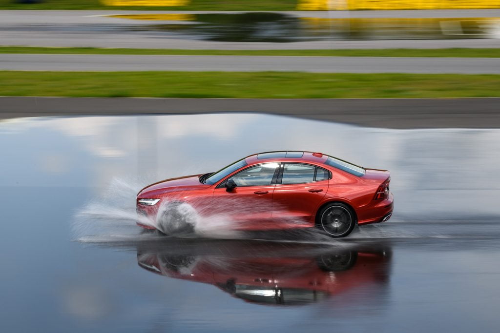 Poniedziałek zaczął się dla klasyków szczęśliwie. Tego dnia akurat na chwilę przestało padać, co zważywszy na wcześniejszą aurę rodem z Wysp Owczych, było chwalebnym wyjątkiem. Na torze ustawiono obok siebie modele Duett, P1800S, 244 Turbo oraz 850R. Te modele przeznaczono do jazd prasowych pod okiem czujnych instruktorów. Ekspozycję uzupełniały OV4 Jakob (1927) oraz PV60 (1946), na które można było jedynie popatrzeć, ewentualnie do nich wsiąść. Szybko okazało się, że każde z aut daje się z łatwością prowadzić. Błędy operowania sprzęgłem kończyły się najwyżej zgaszeniem silnika. Bardzo szybko do klasyków sprowadzonych przez Volvo Car Poland dołączały kolejne modele na parkingu. Jeden dziennikarz przyjechał Amazonem Kombi, inny modelem 244, członkowie fanklubu Volvo zadawali szyku sedanem 164. Obok nich przycupnęły 245 oraz S60 z pierwszej serii liczący ponad 15 lat.