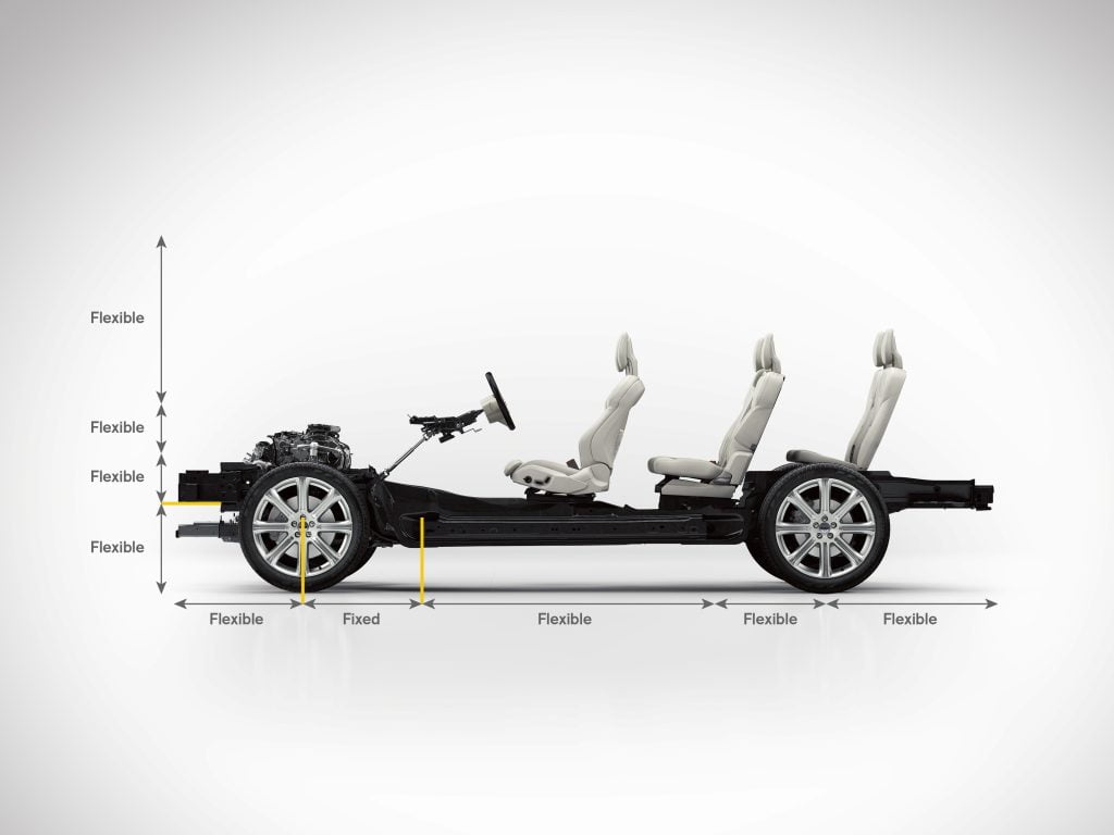 Nowa architektura skalowanej platformy podwozia – SPA to efekt czteroletniej pracy specjalistów ds. rozwoju szwedzkiej marki. Jest ona częścią szerszego programu modernizacji technologii Volvo, wartego około 11 mld dolarów. Nowe XC90 to pierwszy samochód zbudowany na platformie, która będzie standardem w przyszłych modelach marki Volvo. SPA w dużej mierze uprości i skróci proces produkcji oraz obniży jej koszty. Wszystkie modele od serii 60 do 90 będą powstawały na jednej linii produkcyjnej. Nowa płyta podłogowa dała wiele swobody inżynierom i projektantom. SPA wyeliminowała wcześniejsze ograniczenia w takich kwestiach jak: rozstaw osi, wysokość samochodu czy jego przodu. Architektura została zaprojektowana tak, aby ułatwić integrację nowej technologii w ramach szybko zmieniających się obszarów, takich jak mikroprocesory, czujniki czy kamery. Ułatwia to wprowadzanie nowych rozwiązań z zakresu bezpieczeństwa oraz umożliwia szybkie reagowanie na nieustannie pojawiające się nowe multimedia i ich implementację.