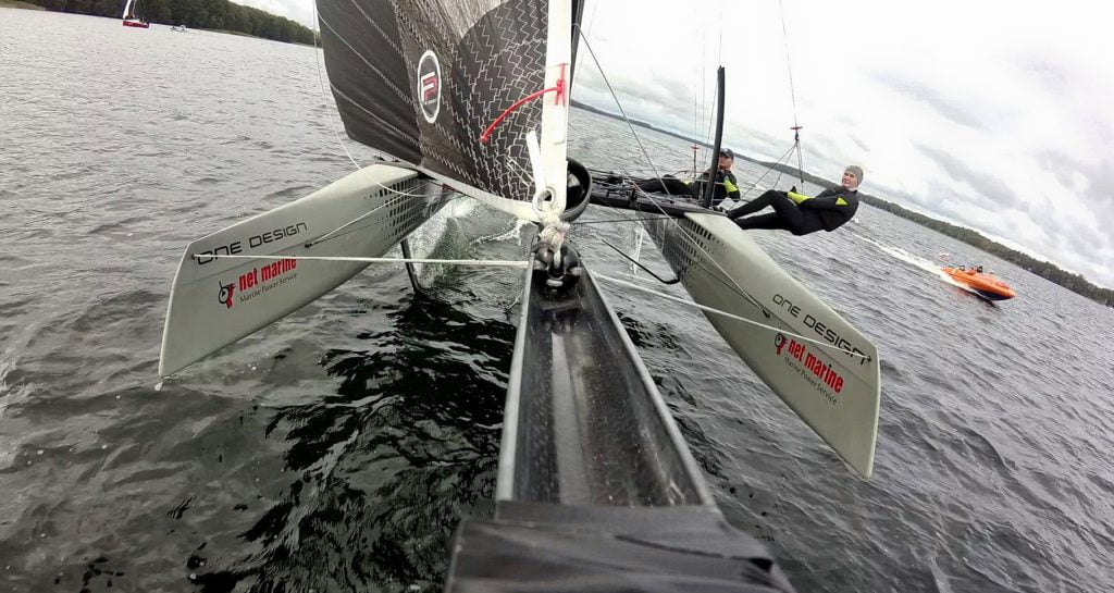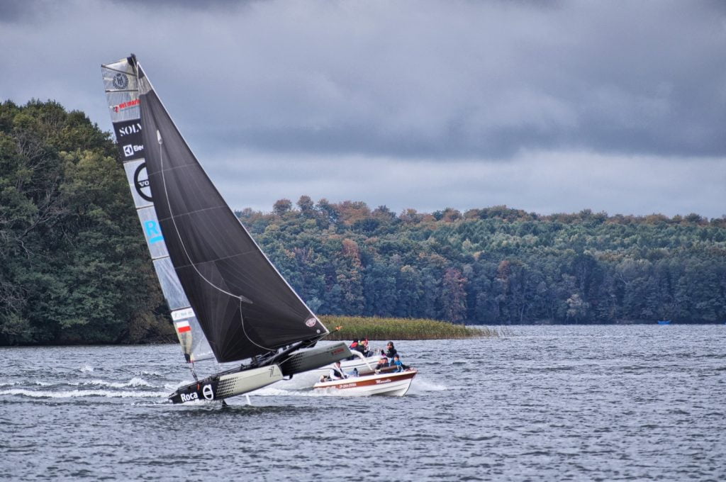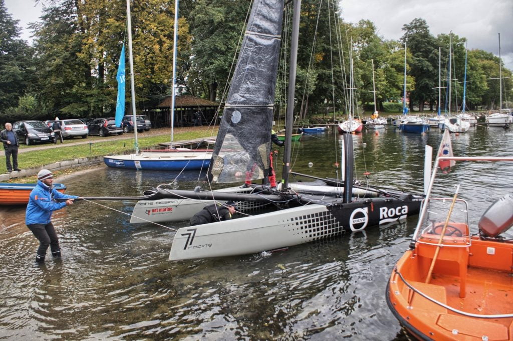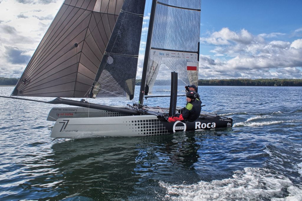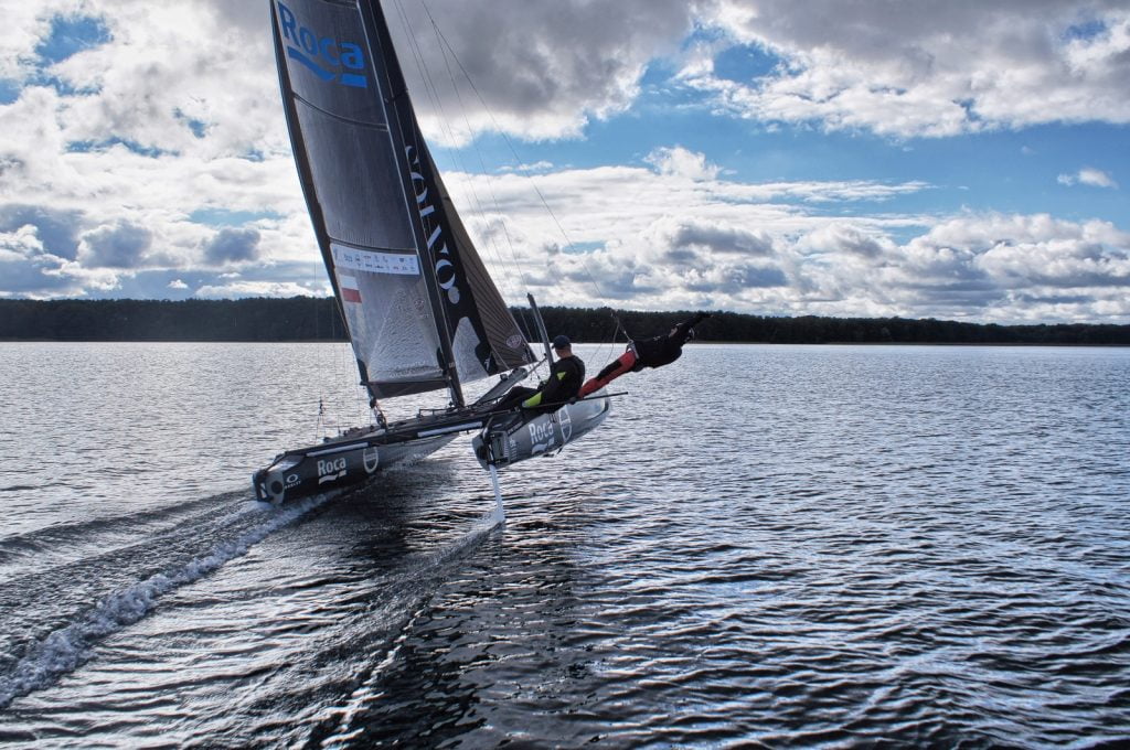 Wyczynowa jednostka Volvo-Roca zbudowana jest niemal w całości z włókna węglowego. Dzięki użyciu do budowy tego lekkiego materiału, osiągnięto niską masę wynoszącą zaledwie 155 kg. Pod pływakami zamocowane są foile, czyli hydroskrzydła. Nawet przy niewielkim wietrze unoszą jednostkę ponad powierzchnię wody, zmniejszając opór hydrodynamiczny, a jednocześnie znacząco zwiększając prędkość. Ta technologia staje się coraz popularniejsza w żeglarstwie wyczynowym.