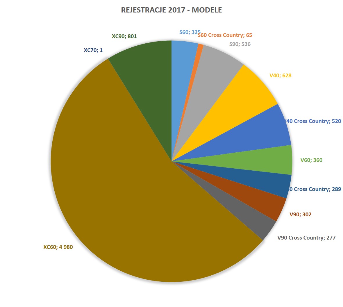 W 2017 roku sprzedano w Polsce 1916 samochodów serii 90. Największym wzięciem cieszył się model XC90 (801 rejestracji), za nim S90 (536 rejestracji), następnie V90 (302 rejestracje) i V90 Cross Country (277 rejestracji). W ubiegłym roku model V40 i V40 Cross Country przeszedł lifting, który pozwolił utrzymać zainteresowanie tym kompaktowym Volvo. W 2017 roku do klientów trafiło 628 tych aut i kolejnych 520 w wersji Cross Country.