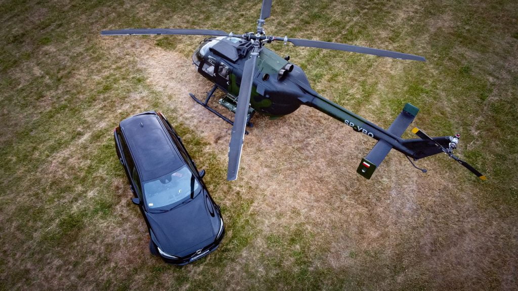 - Heliktopter Bolkow Bo 105 – unikalna konstrukcja na skalę światową. To jedyny na świecie helikopter nadający się do ekstremalnych akrobacji powietrznych. Ma sztywny wirnik bez przegubów, dzięki czemu można wykonywać nim tzw. beczkę – zupełnie jak samolotem. W innych helikopterach istnieje ryzyko, że łopaty wirnika zetną ogon śmigłowca. To opcja, której nie warto testować. Naturalnie śmigłowiec został stworzony do zupełnie innych zadań. W wielu krajach służył jako helikopter ratowniczy, szkoleniowy, a nawet bojowy. Przypuszczalnie sami konstruktorzy nie przypuszczali, że do opisu „wielozadaniowy” dojdzie jeszcze „akrobatyczny”. Obecnie tylko kilku pilotów na świecie podejmuje się wykonywania beczek tym helikopterem. No cóż. My staliśmy tuż obok tego niesamowitego obiektu.