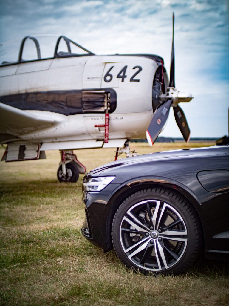 W branży lotniczej jest takie powiedzenie, że jeżeli samolot dobrze wygląda, to najczęściej też dobrze lata. Fotograf Krzysztof Niewiadomski sfotografował Volvo V60 T8 Recharge z różnymi statkami powietrznymi, którym nie można odmówić ogromnego czaru. Nasz samochód został wyposażony w układ napędowy o łącznej mocy 455 KM (310 + 145 KM). Za sprawą przyspieszenia (0-100 km/h w 4,8 s) na pasie startowym Volvo V60 T8 zdołałoby dotrzymać kroku każdemu z tych samolotów aż do ich oderwania się od ziemi. A teraz dwa słowa o samolotach i… helikopterze: