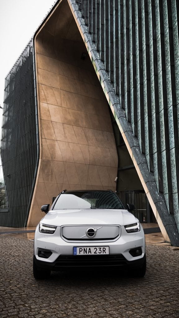 Bagażnik elektrycznej wersji XC40 jest pojemny, bo nie podróżuje w nim akumulator. Na etapie projektowania płyty podłogowej CMA został umieszczony między osiami, pod podłogą. Docelowo ten model ma otrzymać w serii opony uniwersalne Recharge o klasie toczenia A. Dzisiaj opony Cross Climate mają klasę B. W opcji będą opony letnie i zimowe. Z przodu auta, pod maską znalazł się niewielki, wodoszczelny schowek – idealny do spakowania przewodu do ładowania. A sam wóz jest do kupienia przez internet w ustalonej cenie. Klient określa przy tym, u jakiego dealera zechce go odebrać. Volvo nie rezygnuje z wydawania i serwisowania aut w standardzie premium, który zapewnia jego sieć dealerska. Ciekawostkami jest też prześwit wozu wynoszący 21 cm, możliwość brodzenia (40 cm) oraz hak holowniczy. Można na nim przewieźć rowery albo ciągnąć przyczepę o masie do 1500 kg. Niewiele elektryków to potrafi.