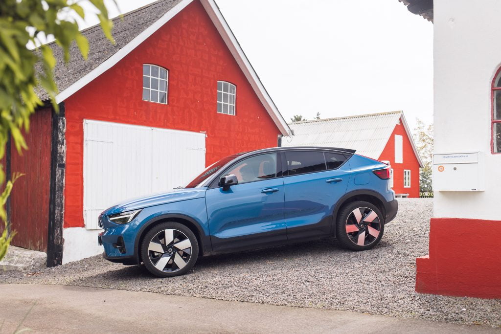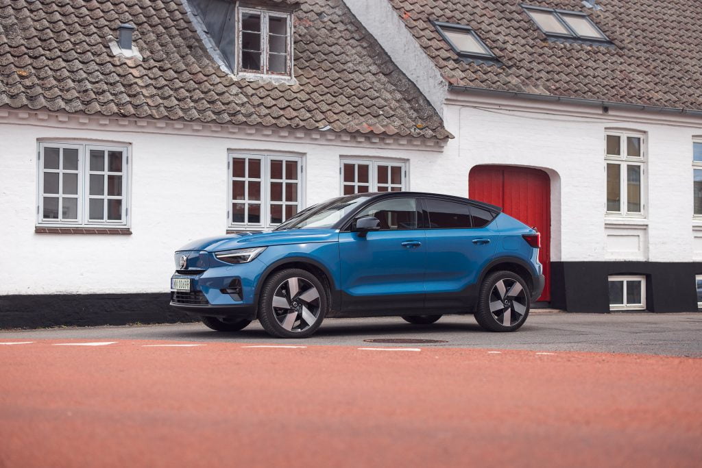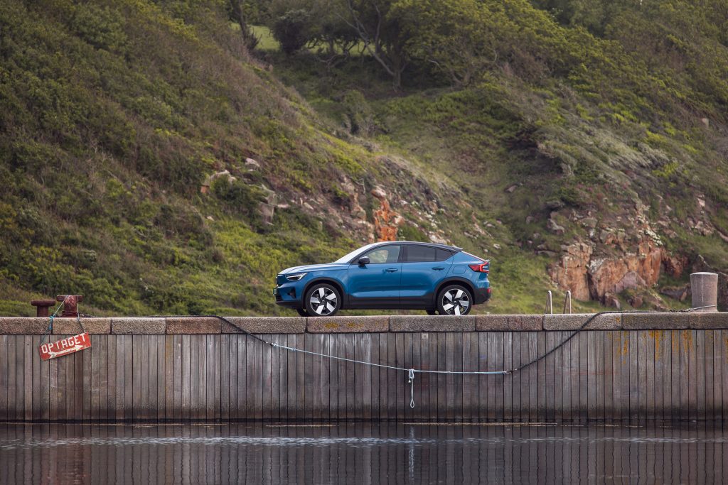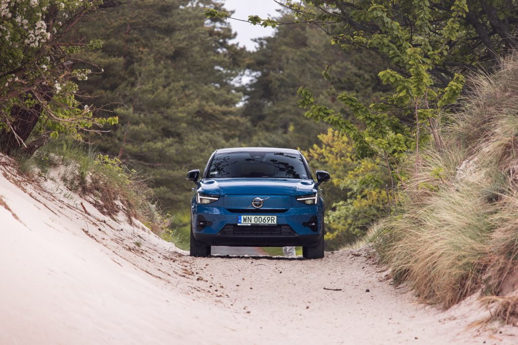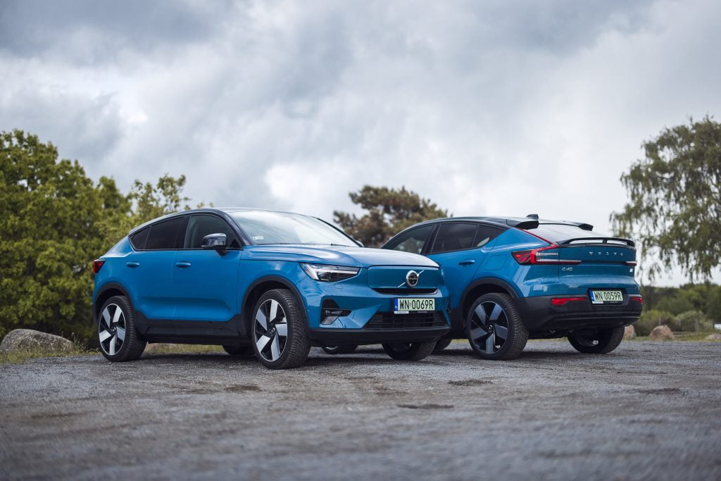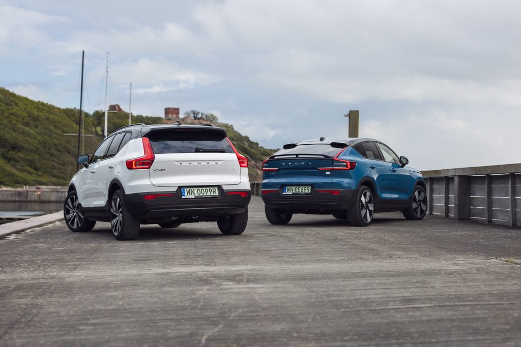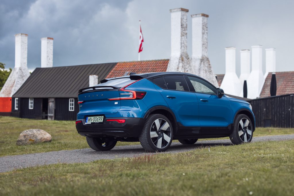 Volvo Cars rozpoczęło elektryfikację od swojego najmniejszego modelu. Jako pierwszy debiutował model XC40 Recharge z napędem na cztery koła z dwoma elektrycznymi silnikami o łącznej mocy 408 KM. Fizyków prosimy o wyrozumiałość. Lepiej byłoby napisać 300 kW. Jego pojemność akumulatora wynosi 78 kWh brutto (75 kWh netto). Sprint do setki to 4,9 s, prędkość maksymalna: 180 km/h, a dopuszczalna masa holowanej przyczepy to 1500 kg. W tej klasie aut to istny rekord. Maksymalna moc ładowania prądem stałym to 150 kW, a prądem zmiennym – 11 kW. Od kilku miesięcy na polskim rynku można nabyć także XC40 Recharge z jednym silnikiem elektrycznym o mocy 231 KM przekazującym napęd na przednią oś. Do setki rozpędza się w 7,6 s, a pojemność akumulatora wynosi 69 kWh. Każda z odmian ma podobny zasięg: około 400 km. Poza XC40, takie same odmiany napędowe znajdziemy w modelu C40. Na Bornholmie testowaliśmy mocniejsze odmiany XC40 i C40 oraz XC40 z jednym silnikiem.